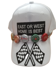 Black or white baseball cap East or West This East or West baseball cap is a classic piece for any wardrobe. Made with a neutral black or white color, this cap is versatile and can be paired with any outfit. The sleek design and durable construction make it a long-lasting accessory. Perfect for both East and West coast style.